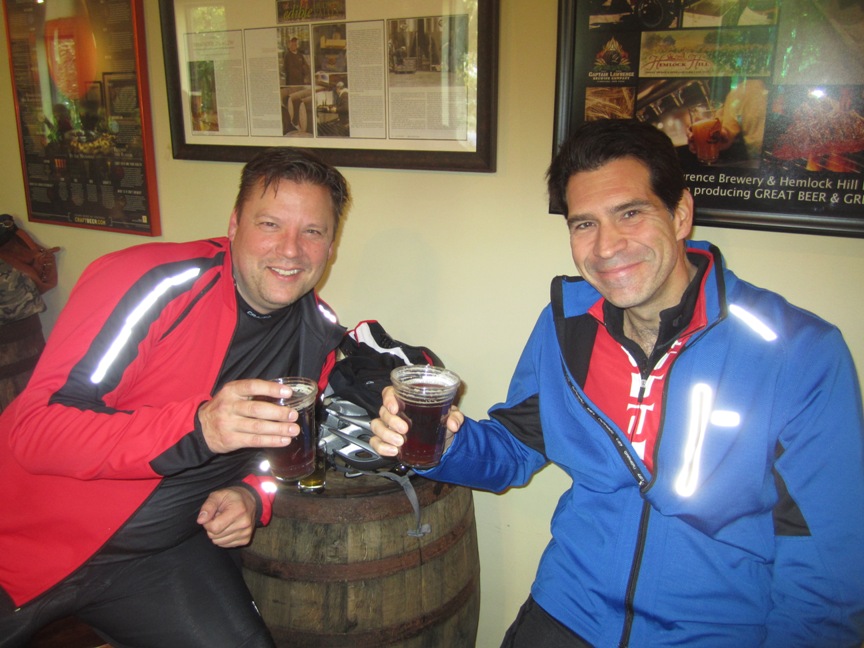 Elsewhere in the tasting room, Greg Cashman and Hugh Babowal of Chappaqua unwind during a break in a 50-mile bike ride. “My daughter said, you’re not riding your bike in the snow,” says Greg, who of course was. “The weather is a little cooler than I’d like, but we knew we’d include some Captain Lawrence in the ride. Beer makes a bike ride better.”